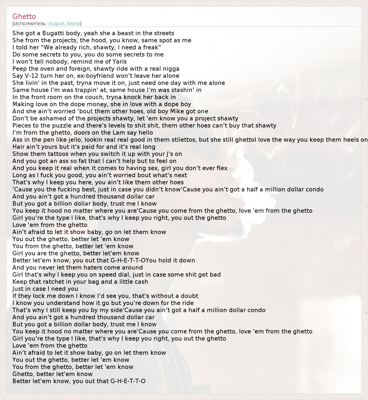 А как ты думаешь, о чем песня "Ghetto" ?