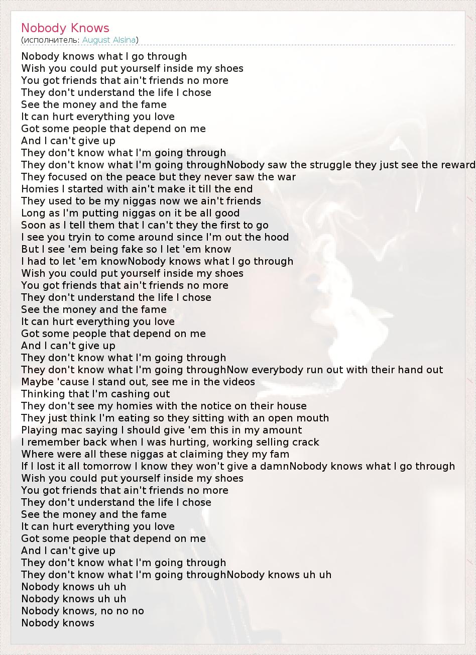 Nobody knows what I go through