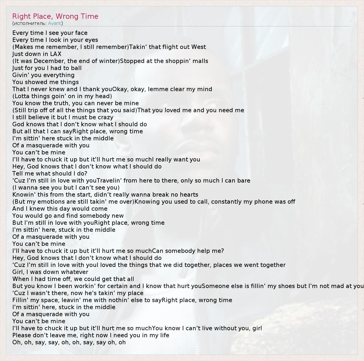 ГлавнаяИсполнителиAvantRight Place, Wrong Time