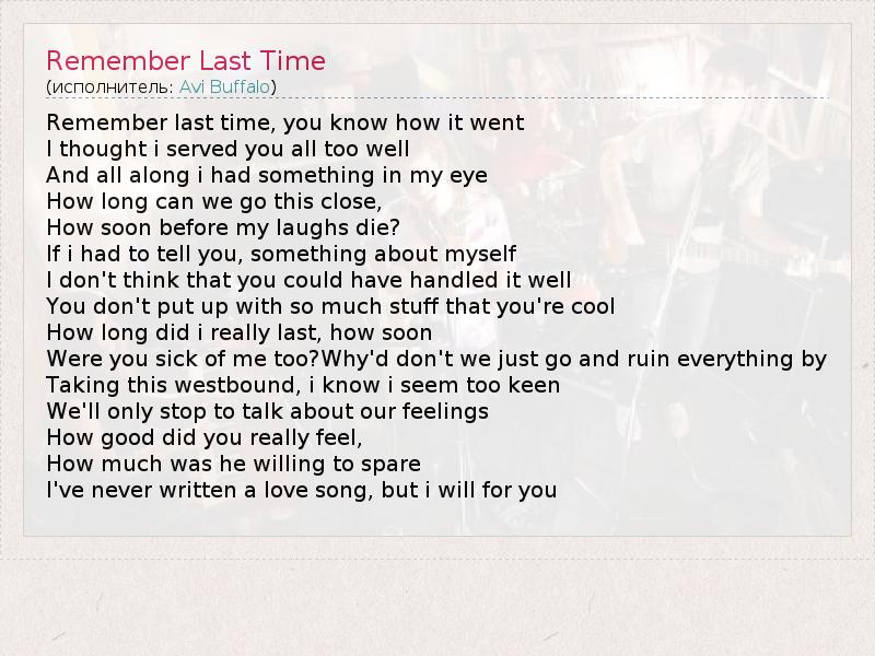 А как ты думаешь, о чем песня "Remember Last Time" ?
