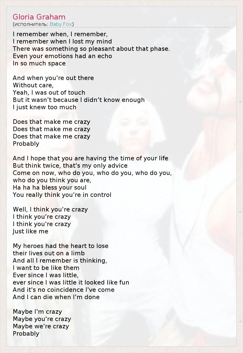 А как ты думаешь, о чем песня "Gloria Graham" ?