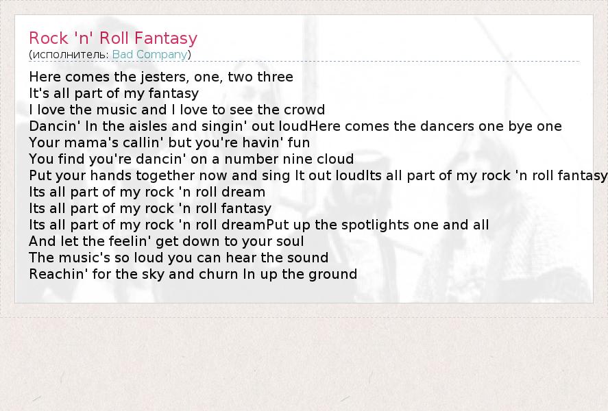 А как ты думаешь, о чем песня "Rock 'n' Roll Fantasy" ?
