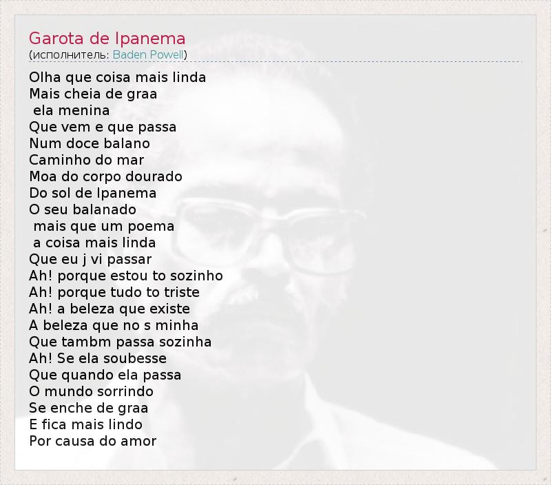 А как ты думаешь, о чем песня "Garota de Ipanema" ?