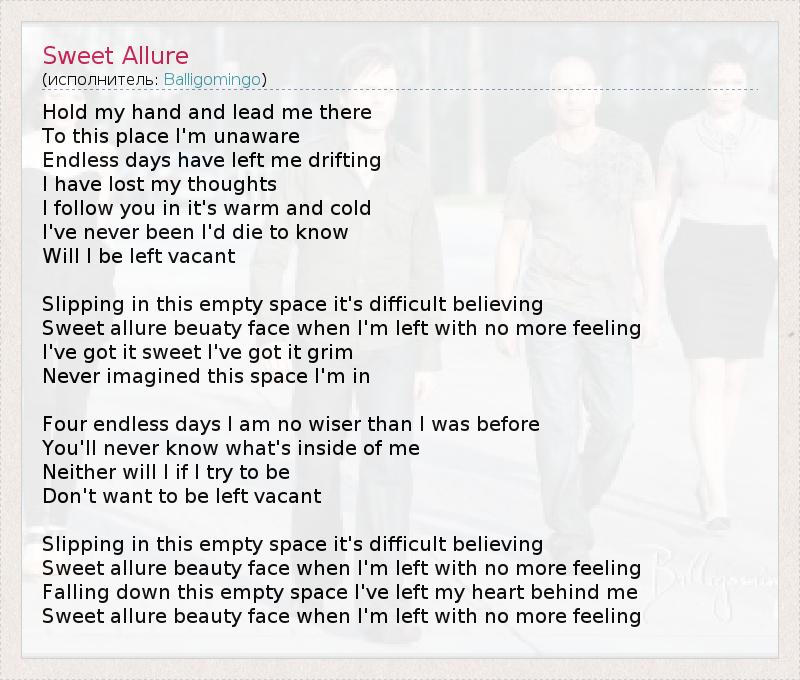 А как ты думаешь, о чем песня "Sweet Allure" ?