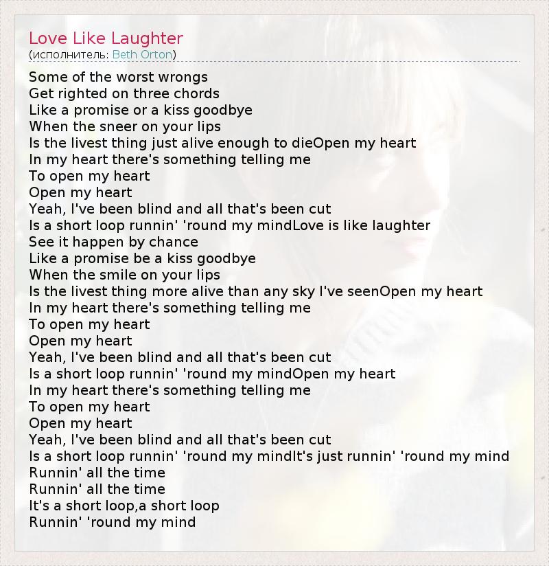 А как ты думаешь, о чем песня "Love Like Laughter" ?