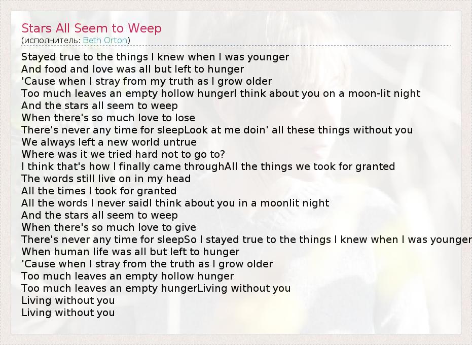 А как ты думаешь, о чем песня "Stars All Seem to Weep" ?
