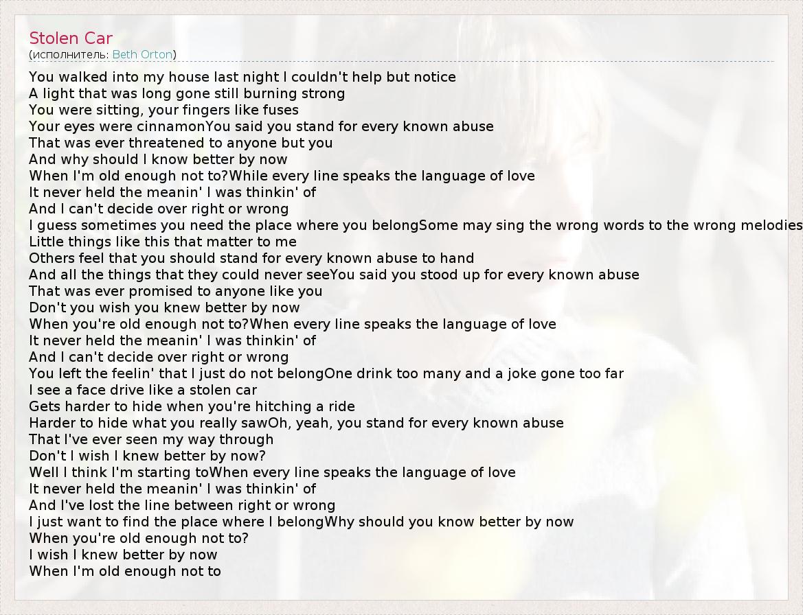 А как ты думаешь, о чем песня "Stolen Car" ?