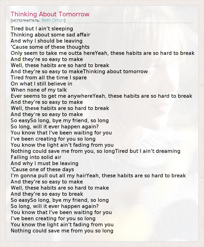 А как ты думаешь, о чем песня "Thinking About Tomorrow" ?