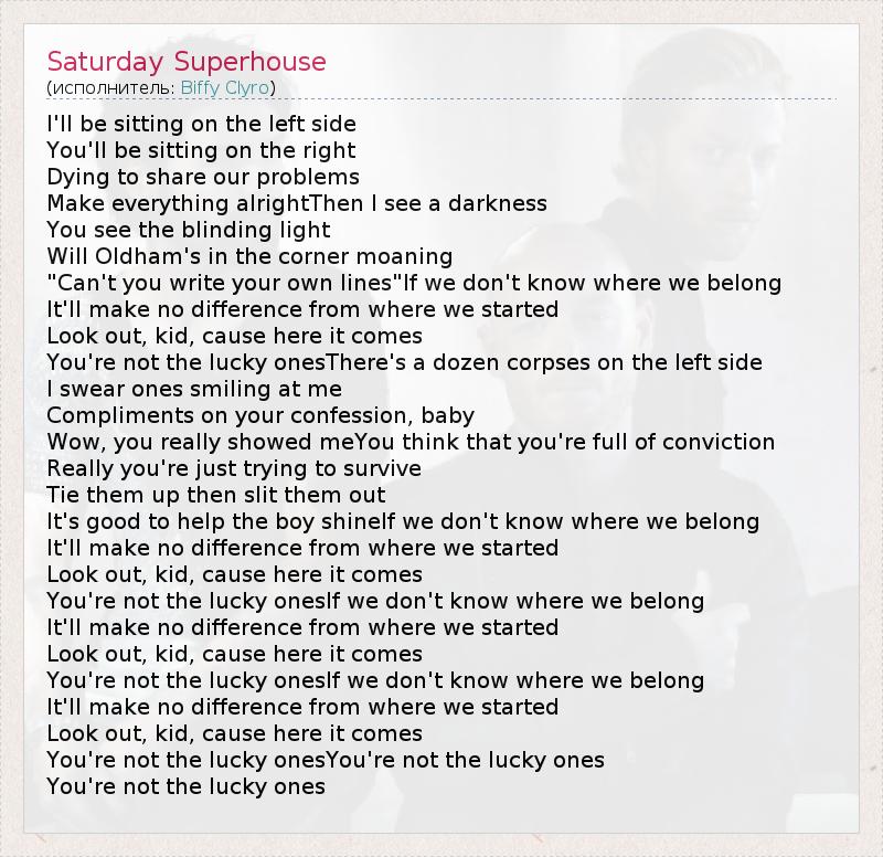 А как ты думаешь, о чем песня "Saturday Superhouse" ?