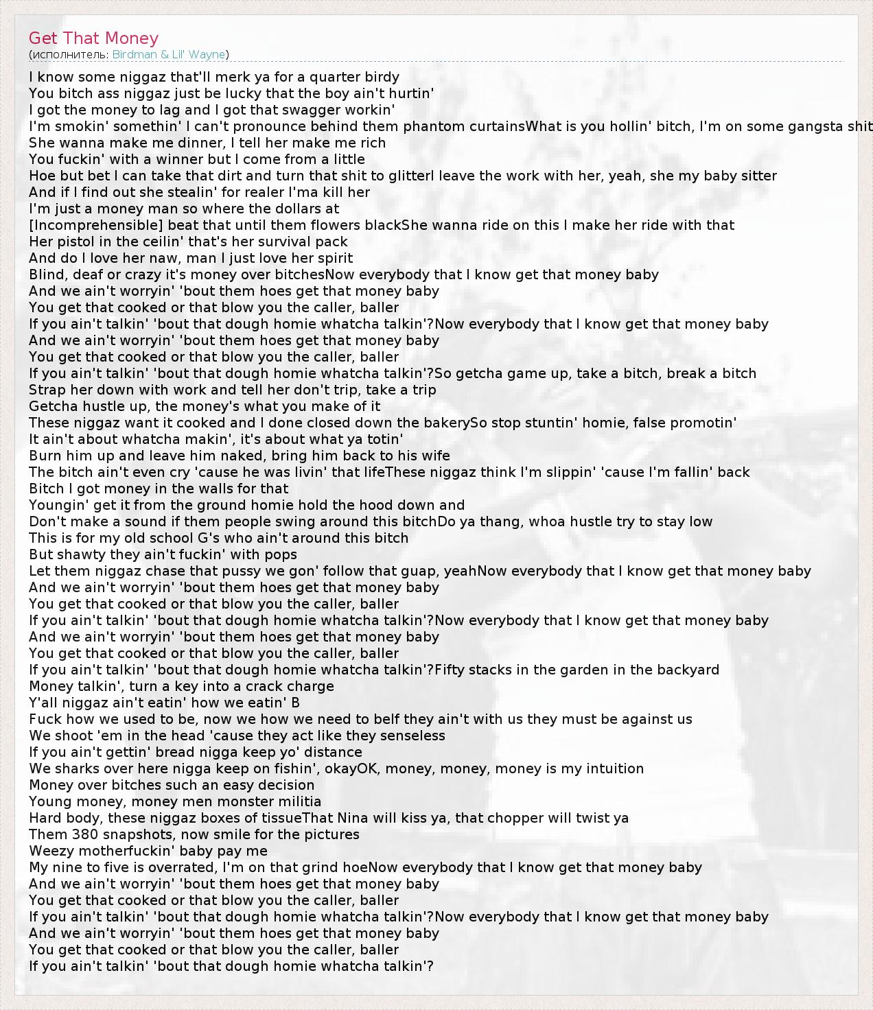 Blind, deaf or crazy it's money over bitchesNow everybody that I know get that money baby