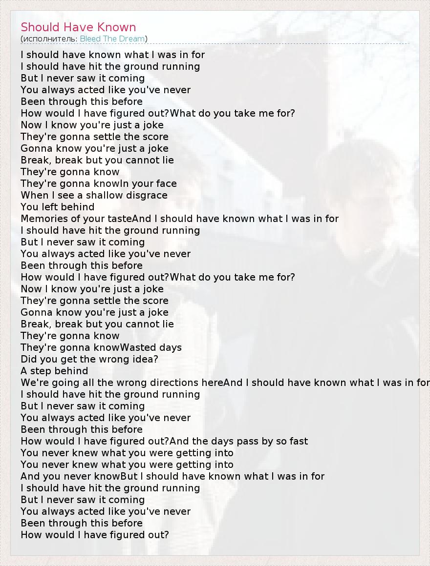 А как ты думаешь, о чем песня "Should Have Known" ?