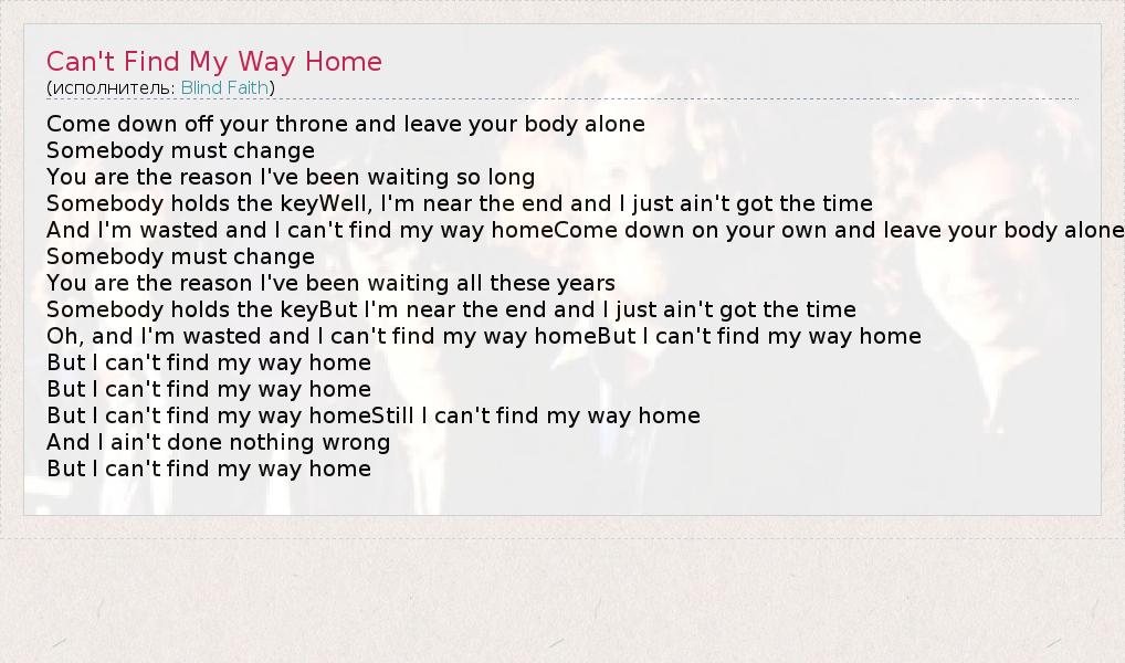 А как ты думаешь, о чем песня "Can't Find My Way Home" ?