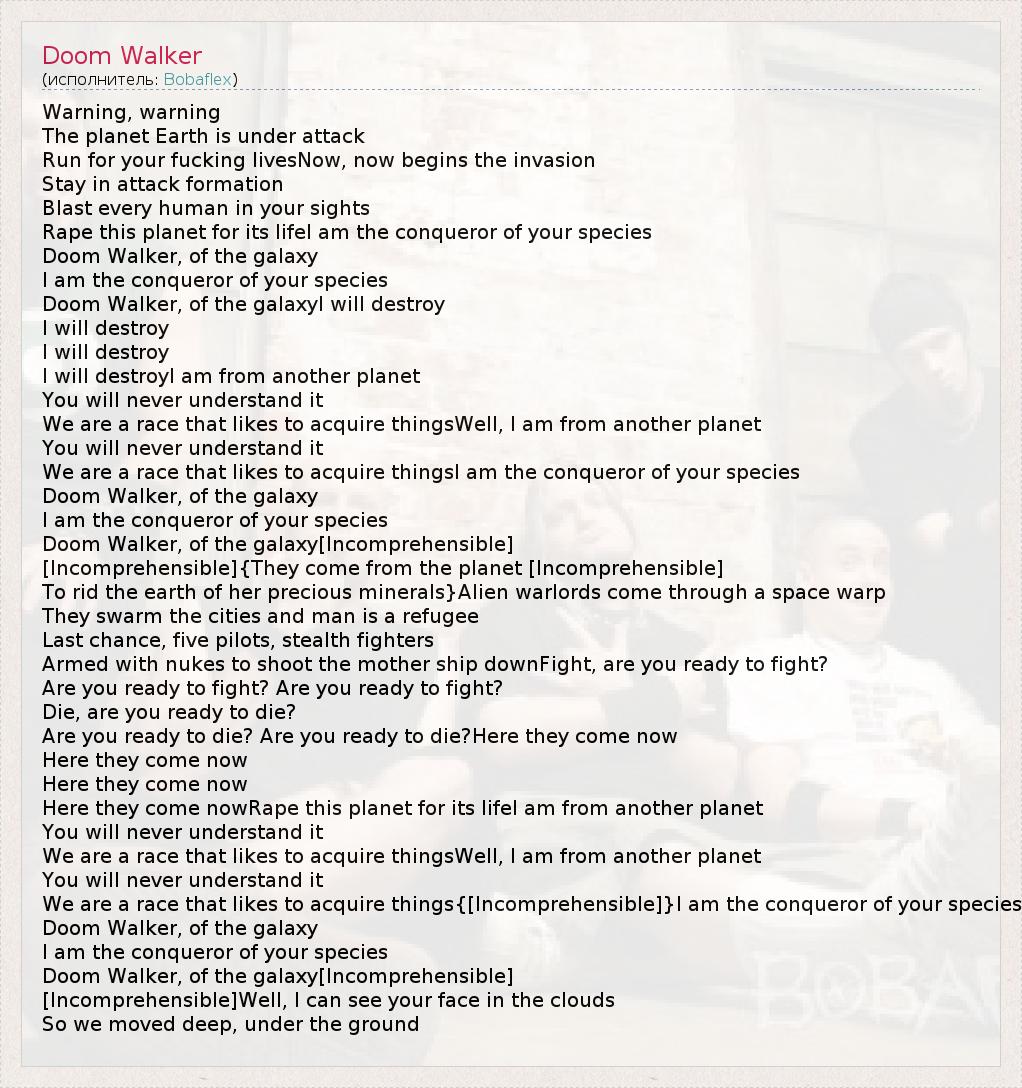 А как ты думаешь, о чем песня "Doom Walker" ?