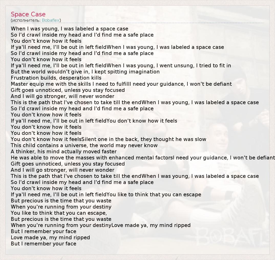 If ya'll need me, I'll be out in left fieldWhen I was young, I was labeled a space case
