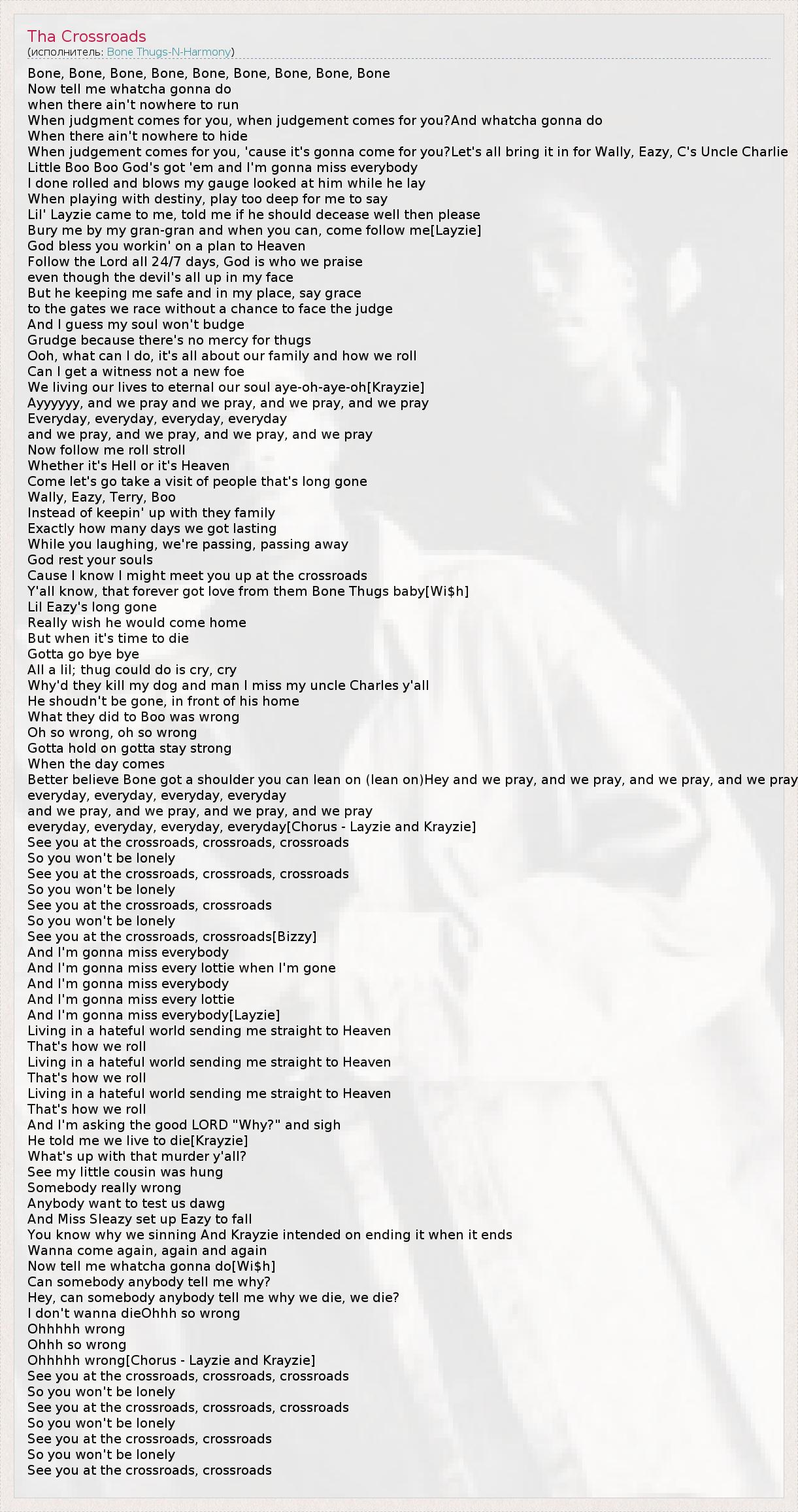 А как ты думаешь, о чем песня "Tha Crossroads" ?