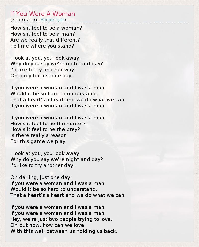 А как ты думаешь, о чем песня "If You Were A Woman" ?