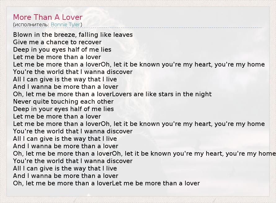 А как ты думаешь, о чем песня "More Than A Lover" ?