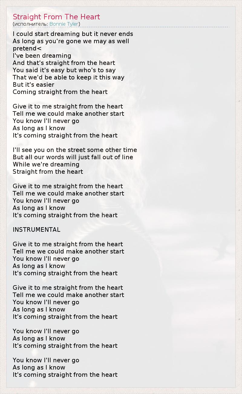 А как ты думаешь, о чем песня "Straight From The Heart" ?