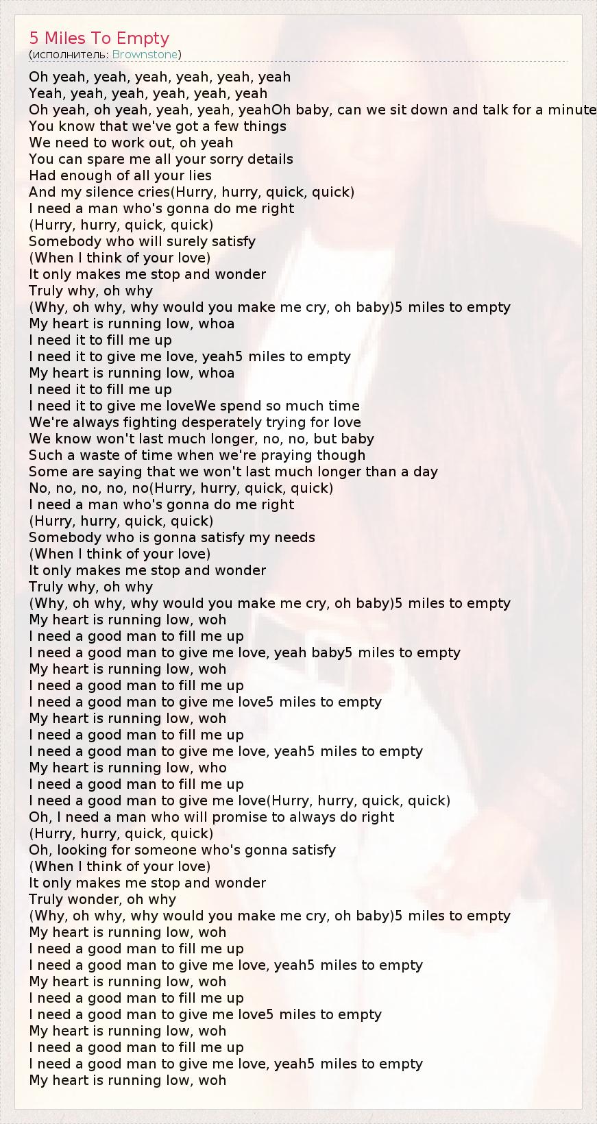 А как ты думаешь, о чем песня "5 Miles To Empty" ?