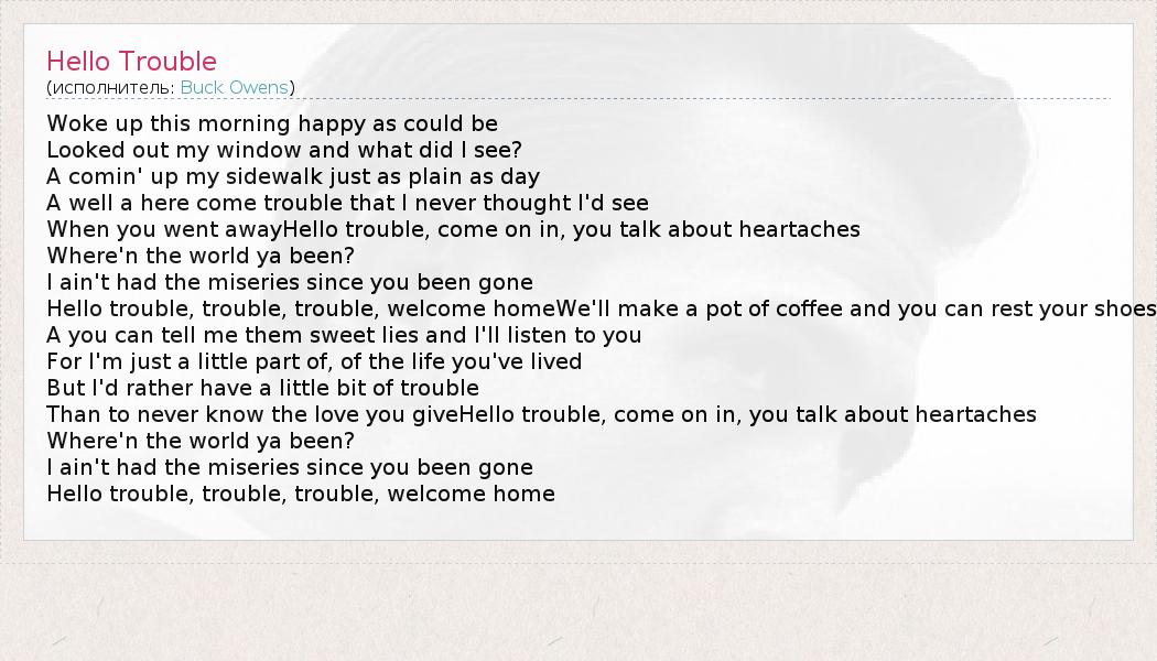 А как ты думаешь, о чем песня "Hello Trouble" ?