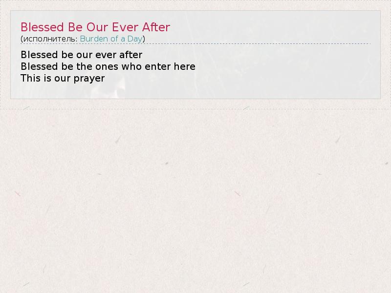 А как ты думаешь, о чем песня "Blessed Be Our Ever After" ?