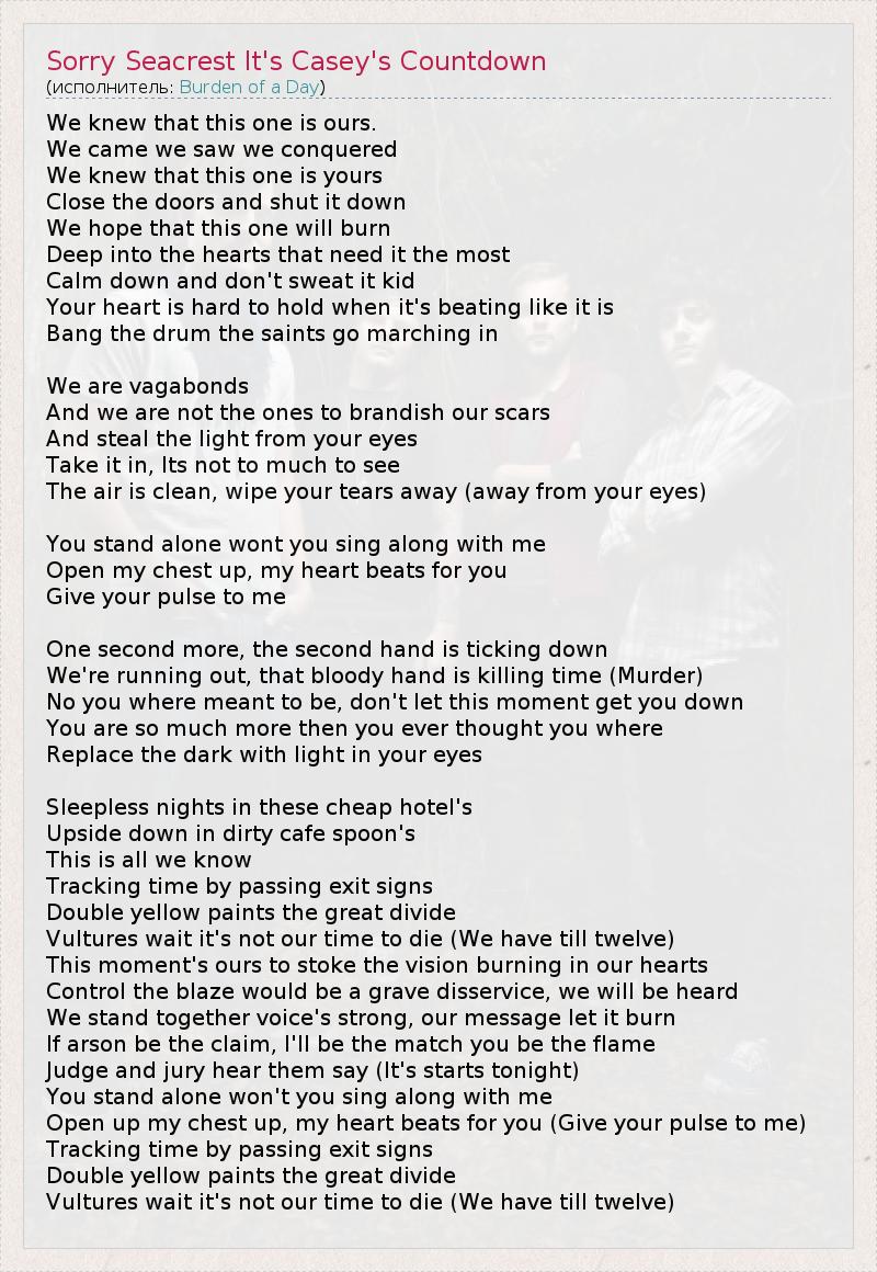 ГлавнаяИсполнителиBurden of a DaySorry Seacrest It's Casey's Countdown