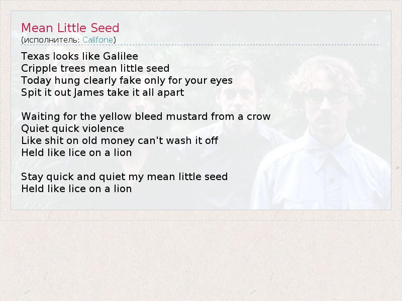 А как ты думаешь, о чем песня "Mean Little Seed" ?