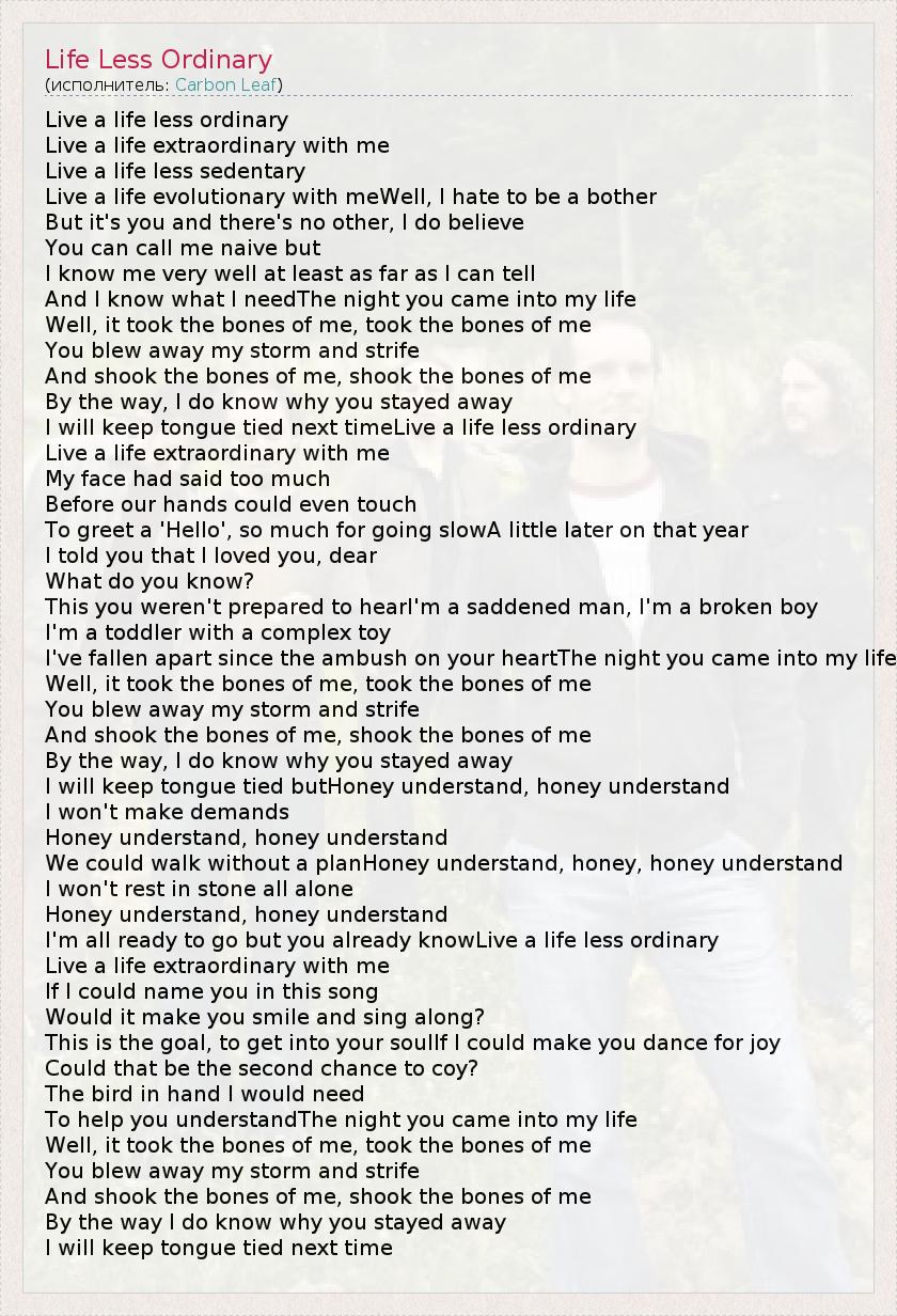 А как ты думаешь, о чем песня "Life Less Ordinary" ?