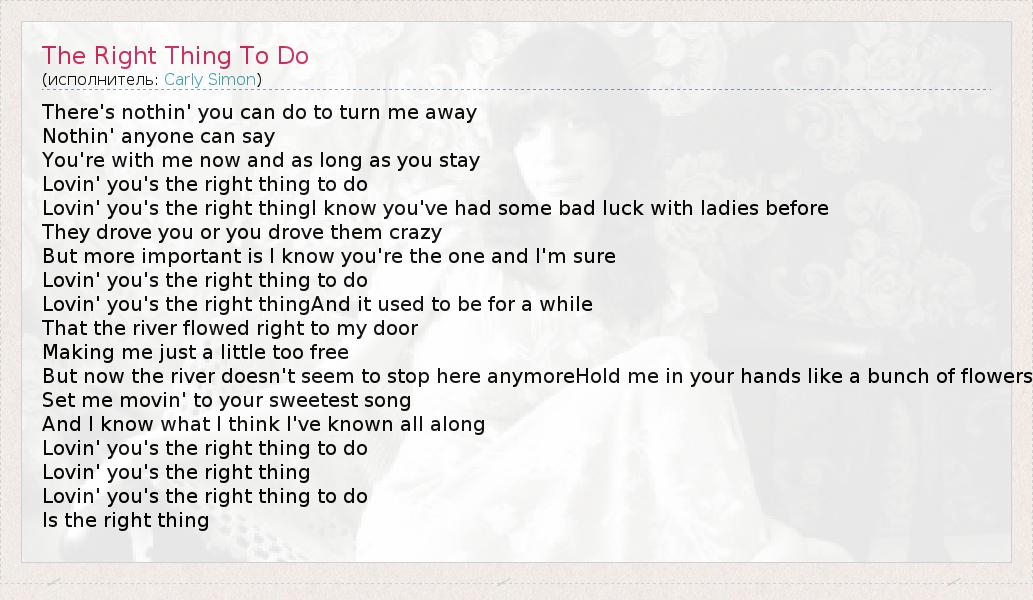 А как ты думаешь, о чем песня "The Right Thing To Do" ?
