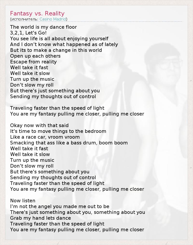 А как ты думаешь, о чем песня "Fantasy vs. Reality" ?