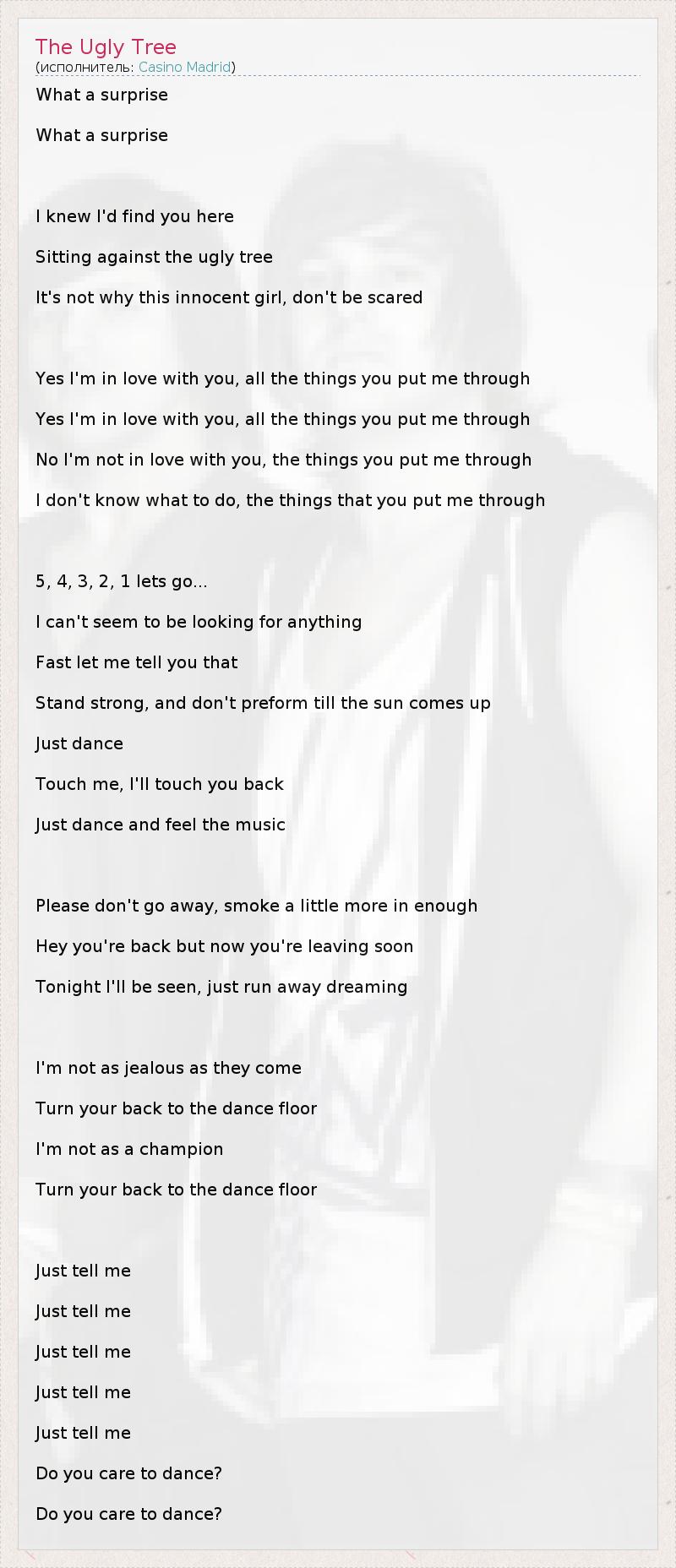 А как ты думаешь, о чем песня "The Ugly Tree" ?