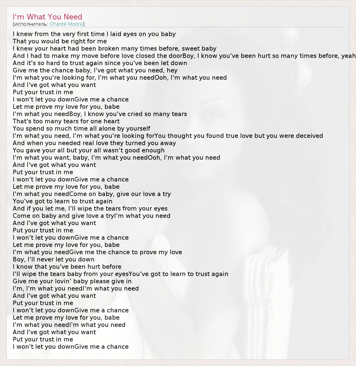 А как ты думаешь, о чем песня "I'm What You Need" ?
