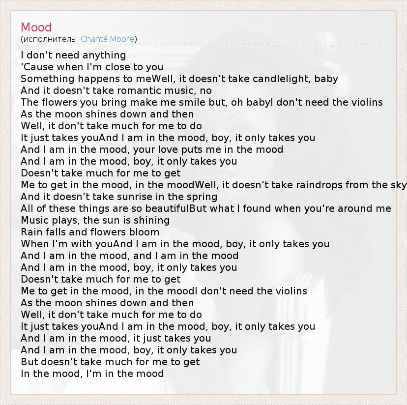 And I am in the mood, your love puts me in the mood