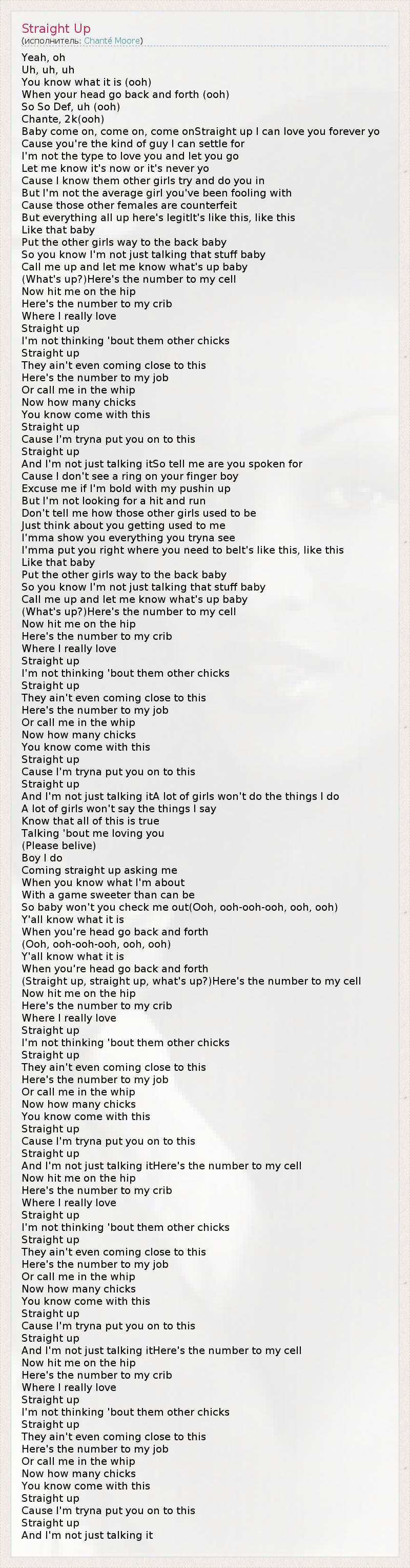 (Straight up, straight up, what's up?)Here's the number to my cell