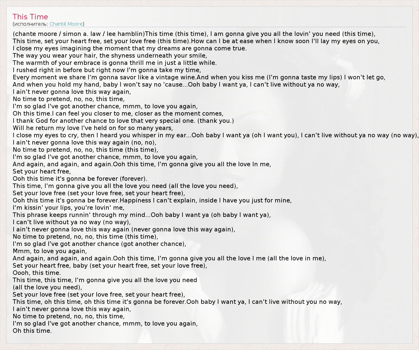 (chante moore / simon a. law / lee hamblin)This time (this time), I am gonna give you all the lovin' you need (this time),