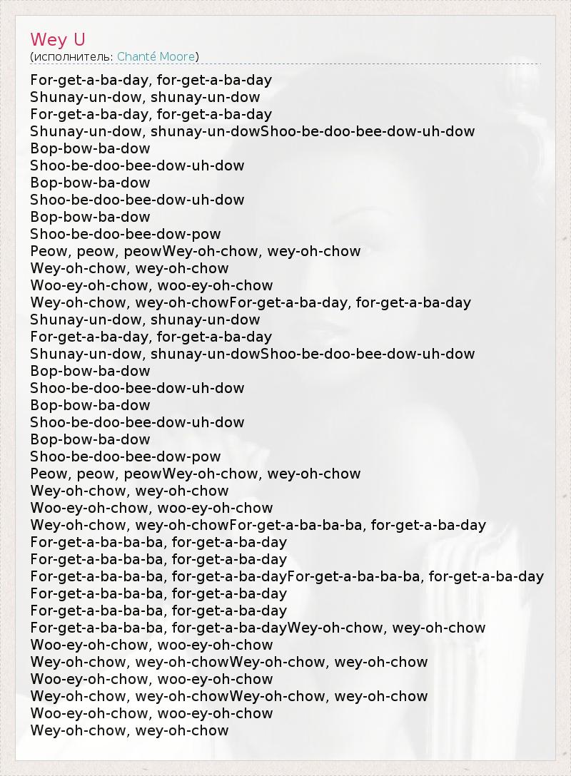 Wey-oh-chow, wey-oh-chowFor-get-a-ba-ba-ba, for-get-a-ba-day