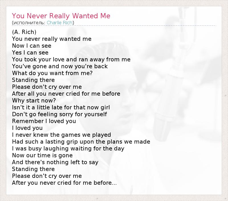 ГлавнаяИсполнителиCharlie RichYou Never Really Wanted Me