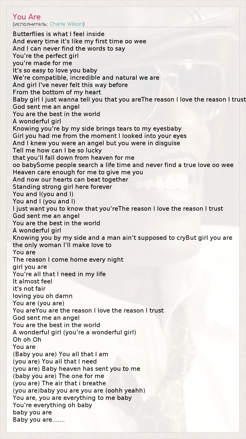 Baby girl I just wanna tell you that you areThe reason I love the reason I trust