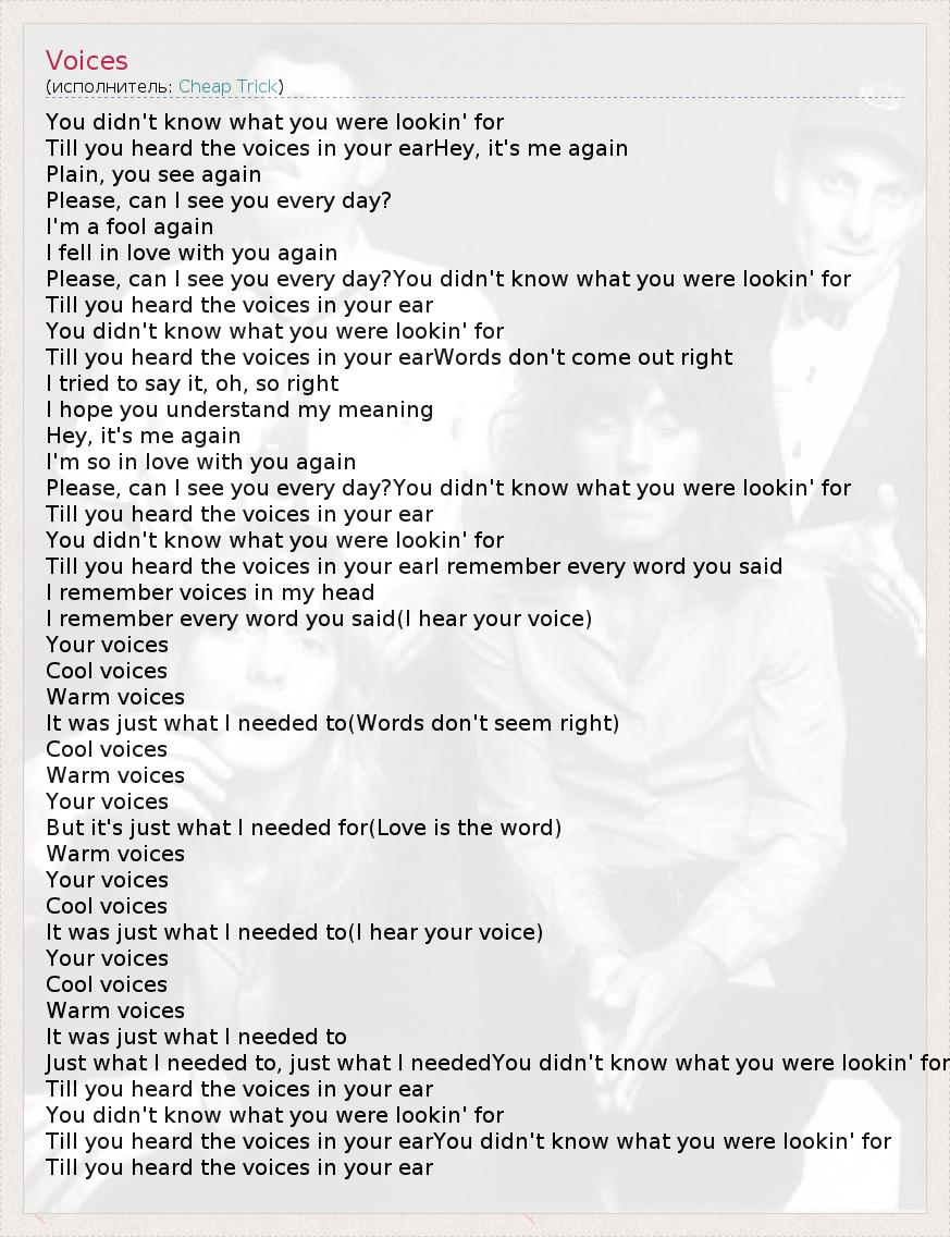 Till you heard the voices in your earYou didn't know what you were lookin' for