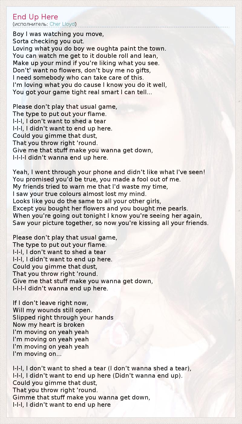 Это интересно:Cher Lloyd английская певица и рэппер из Malvern, Worcestershire, которая получила популярность после участия в шоу X Factor.X-Factor.Cher пробовалась на X-Factor два раза, в свой судьбоносный второй раз она исполнила для судей песню Keri Hilson - Turn My Swag On. Во втором туре она исполнила рэп-версию Viva La Vida группы Coldplay.... продолжение