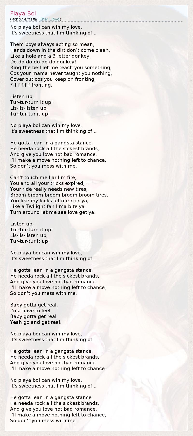 А как ты думаешь, о чем песня "Playa Boi" ?