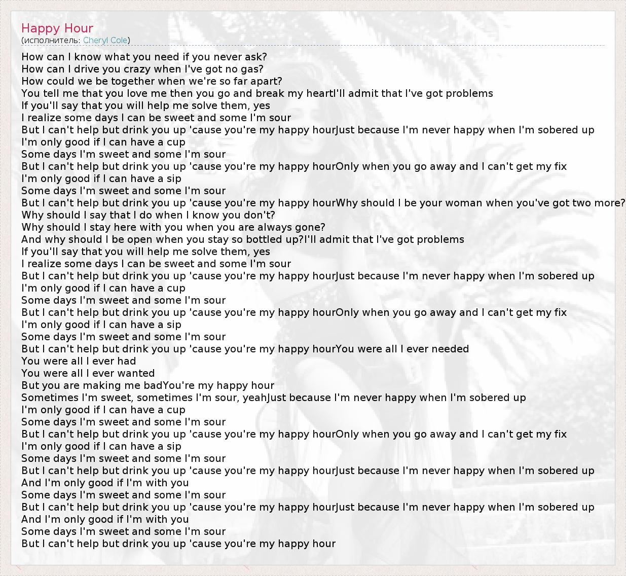 А как ты думаешь, о чем песня "Happy Hour" ?