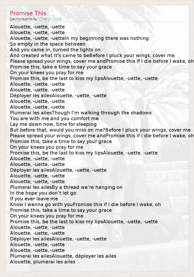 Promise this, be the last to kiss my lipsAlouette, -uette, -uette