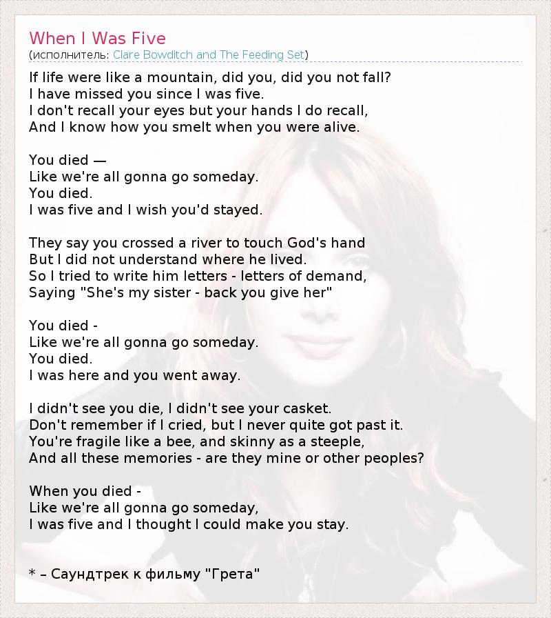 А как ты думаешь, о чем песня "When I Was Five" ?
