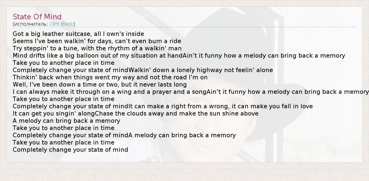А как ты думаешь, о чем песня "State Of Mind" ?