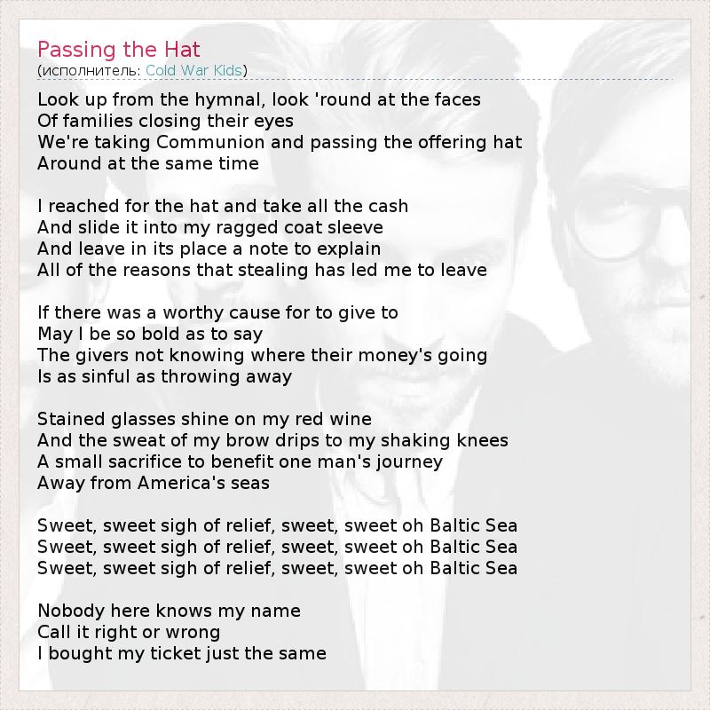 А как ты думаешь, о чем песня "Passing the Hat" ?