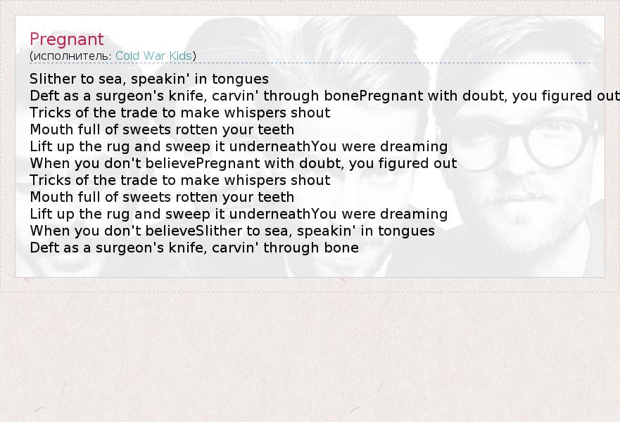 А как ты думаешь, о чем песня "Pregnant" ?