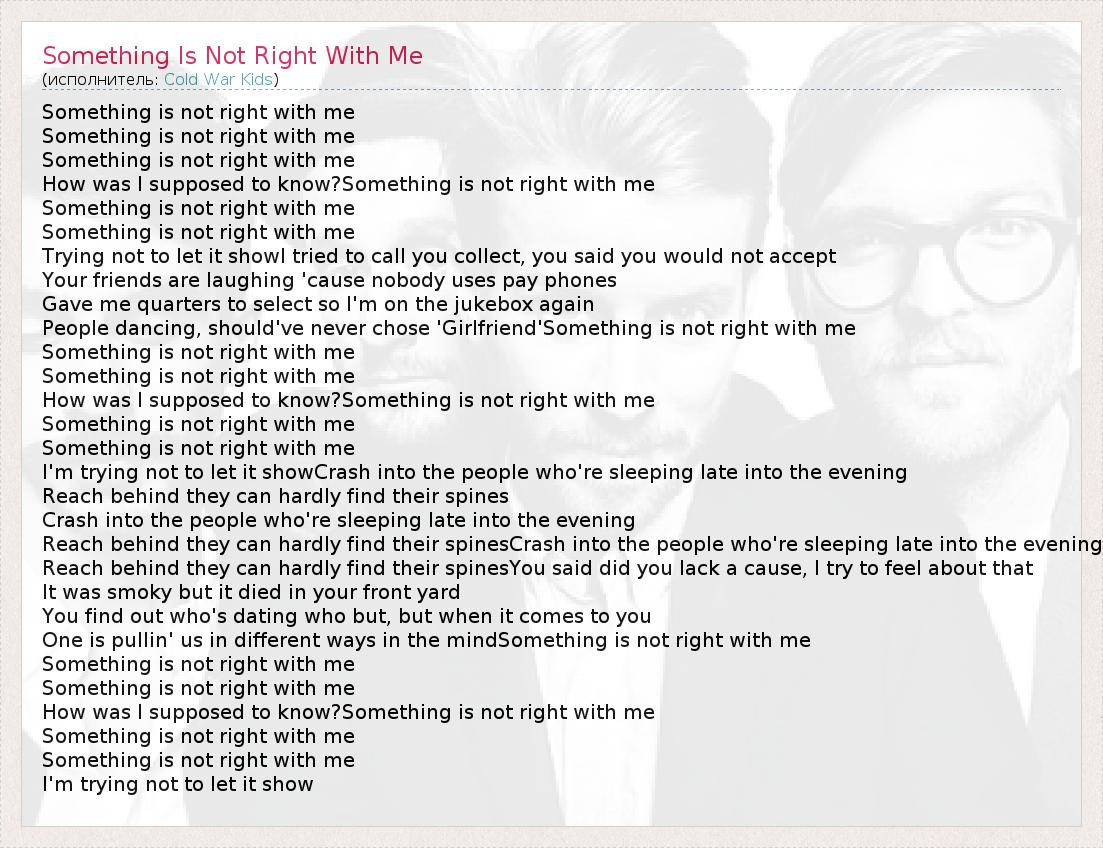 ГлавнаяИсполнителиCold War KidsSomething Is Not Right With Me