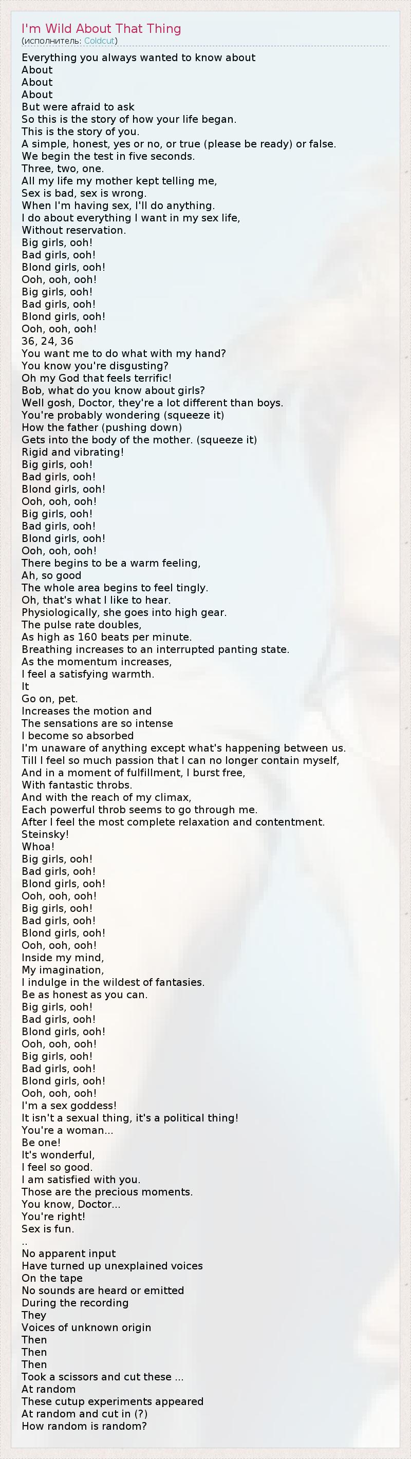 ГлавнаяИсполнителиColdcutI'm Wild About That Thing