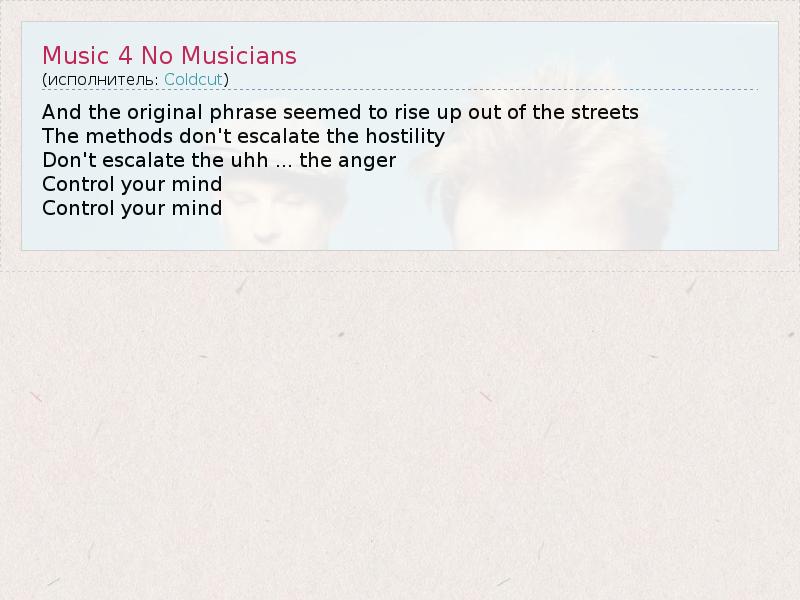 А как ты думаешь, о чем песня "Music 4 No Musicians" ?